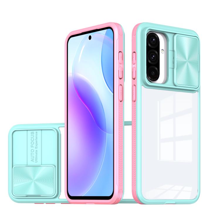 Funda deslizante de acrílico transparente + PC + TPU para Samsung Galaxy A56 5G / A36 5G (azul y rosa)