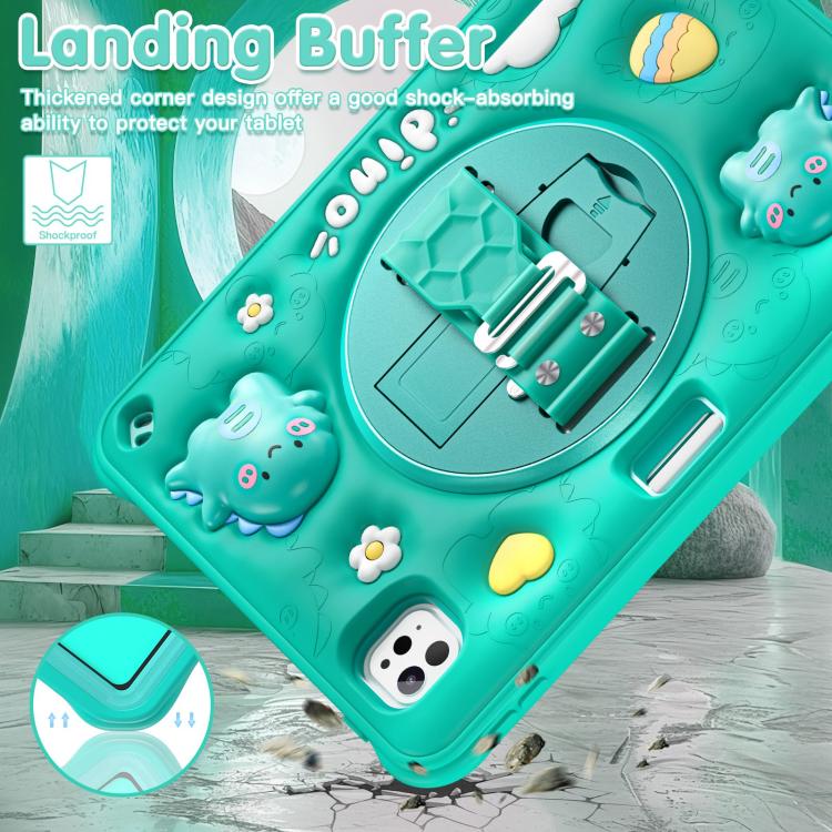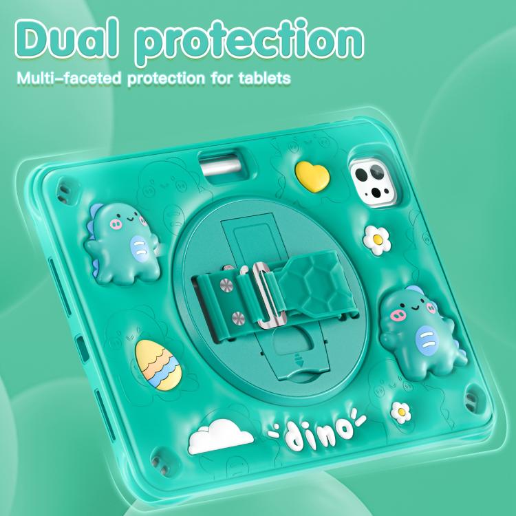 Funda Híbrida de Silicona Dragón para iPad Pro 11 (2024) con Atril y Rotación (Verde)