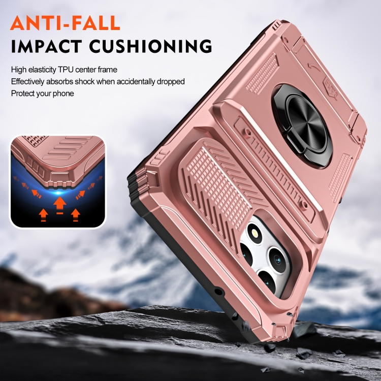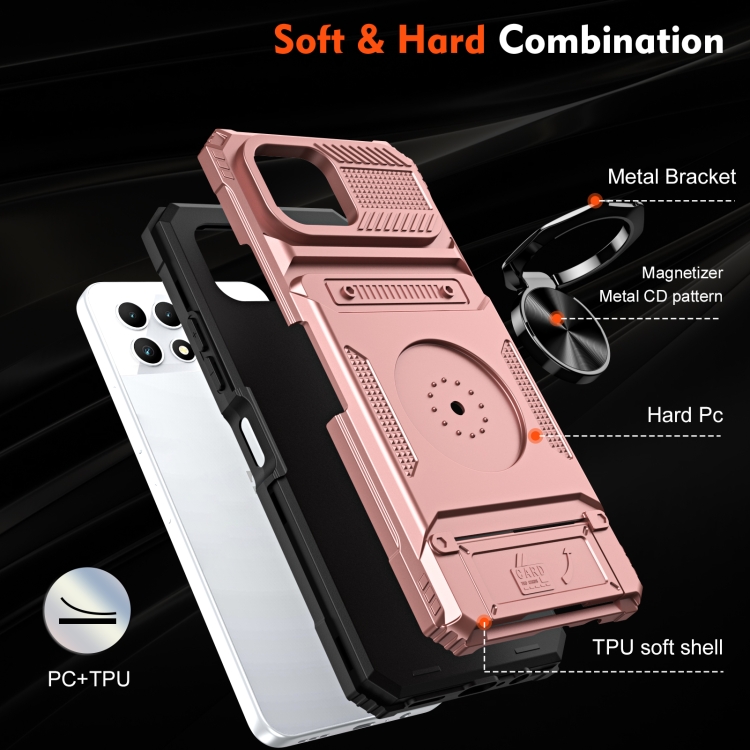 Funda Híbrida TPU para T-Mobile Revvl 7 con Soporte de Anillo de Metal (Oro Rosa)