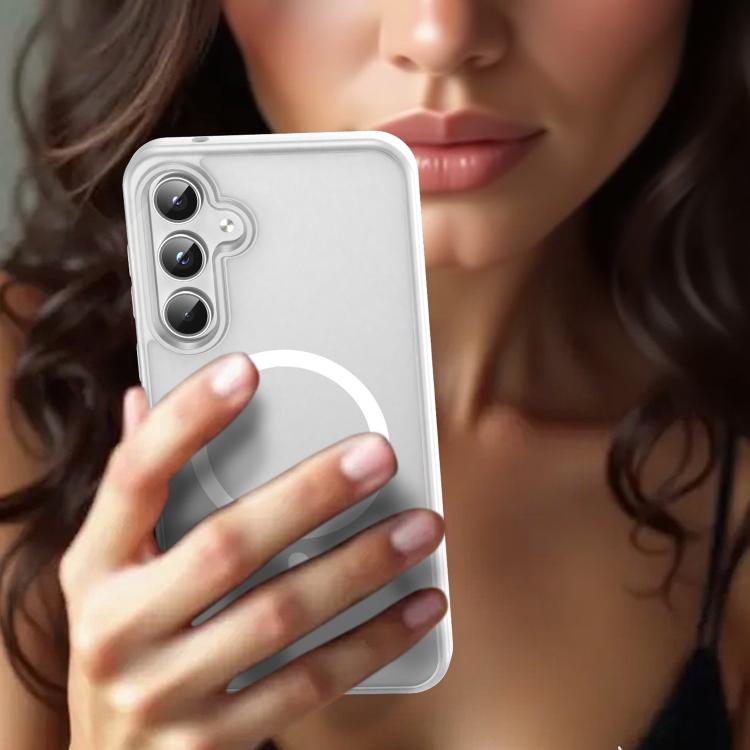 Funda híbrida de TPU translúcida con acabado mate MagSafe para Samsung Galaxy A55 5G (blanco mate)