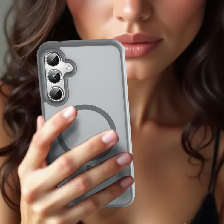 Funda híbrida de TPU translúcida con acabado mate MagSafe para Samsung Galaxy A55 5G (gris plateado)
