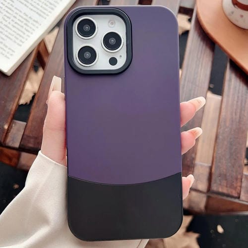 Funda híbrida TPU y PC para iPhone 13 Pro Max con tacto suave y contraste de color (Morado y Negro)