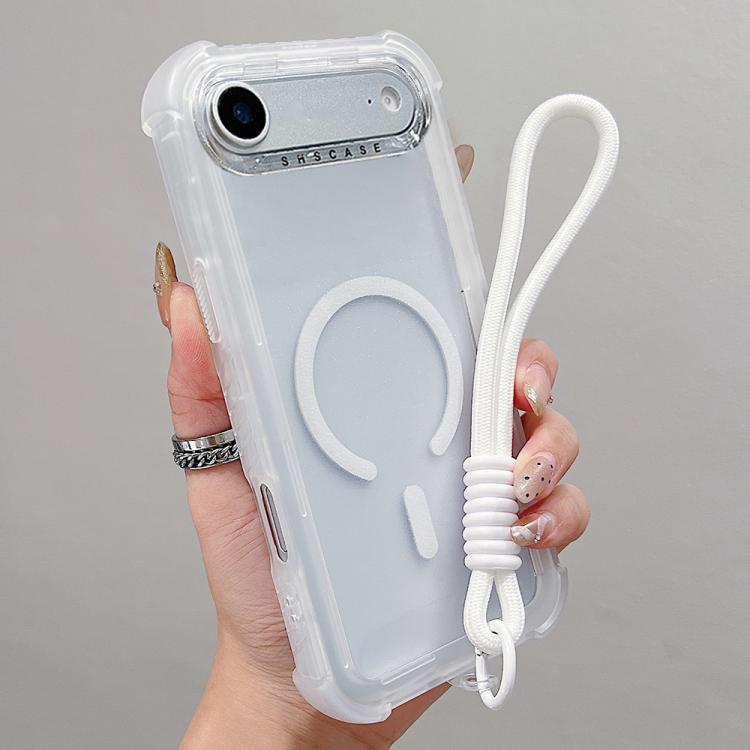 Funda híbrida de TPU y PC transparente mate 3 en 1 MagSafe para iPhone Air con correa de muñeca (blanca)