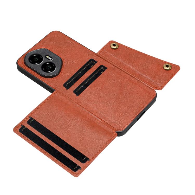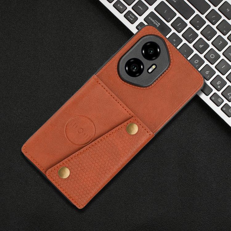 Funda Magnética para Honor 300 con Ranuras para Tarjetas y Doble Hebilla (Marrón)