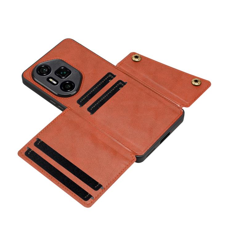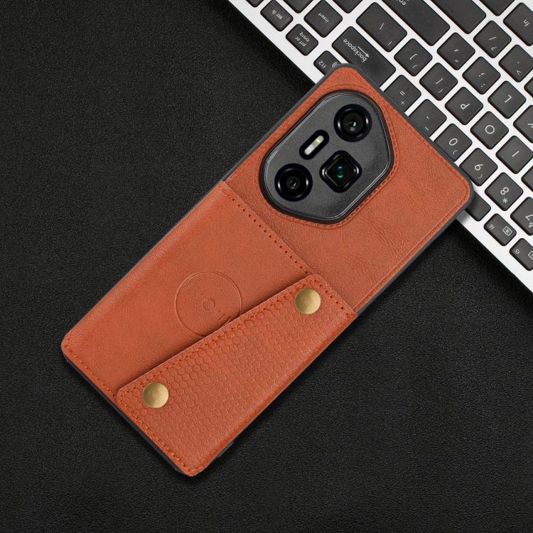 Funda Magnética para Honor 300 Ultra con Ranuras para Tarjetas y Doble Hebilla (Marrón)