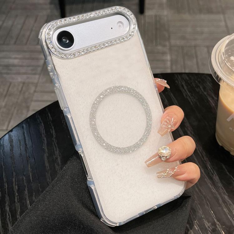 Funda MagSafe semitransparente con purpurina y bordes redondeados para iPhone Air (blanca)