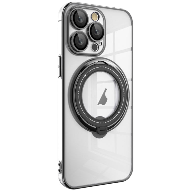 Funda para iPhone 16 Pro Soporte Giratorio 360 Grados Galvanoplastia Magsafe Prueba de Golpes (Negra)