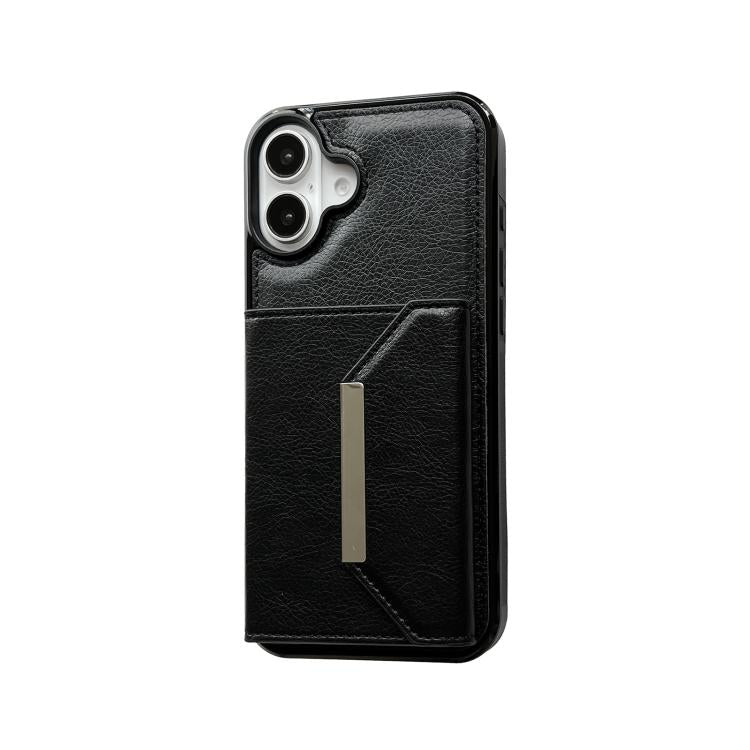 Funda para iPhone 17 con hebilla metálica de color sólido y ranuras para tarjetas (negra)