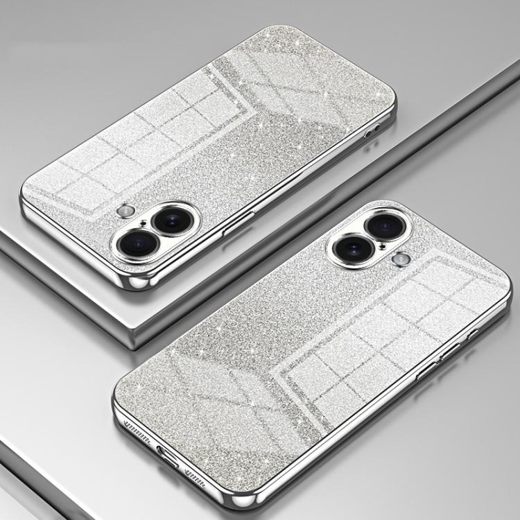 Funda para iPhone 17 con purpurina en polvo degradado y galvanizada (plateada)