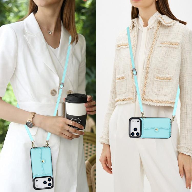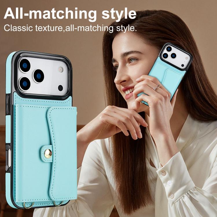 Funda para iPhone 17 Pro con ranura para tarjeta RFID y cordón largo (verde menta)