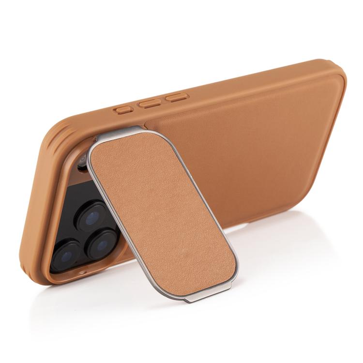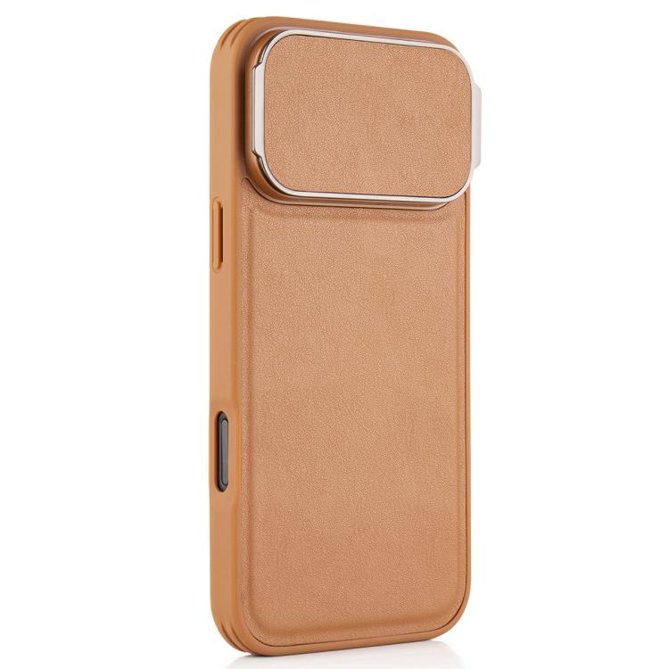 Funda para iPhone 17 Pro Max con diseño de piel de cordero y soporte para lente cuadrado (marrón)