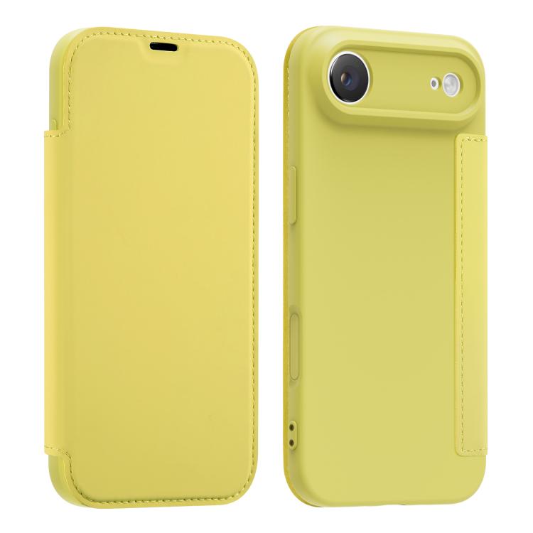 Funda para iPhone Air con tacto de piel sintética tipo Liquid Skin y ranuras para tarjetas (amarilla).