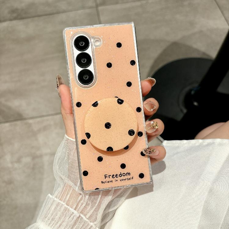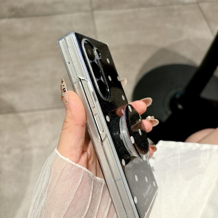 Funda para Samsung Galaxy Z Fold5 con diseño de puntos brillantes y soporte (dorada)