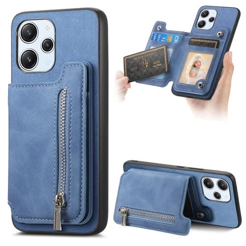 Funda para Teléfono con Cremallera Magsafe Retro para Redmi 12 / Note 12R / Poco M6 Pro 5G (Azul)
