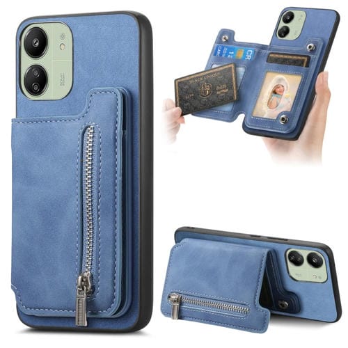 Funda para Teléfono con Cremallera Magsafe Retro para Redmi 13C / Poco C65 / M6 (Azul)