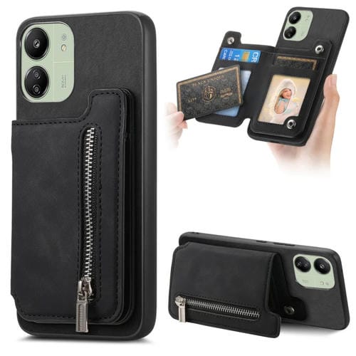 Funda para Teléfono con Cremallera Magsafe Retro para Redmi 13C / Poco C65 / M6 (Negra)