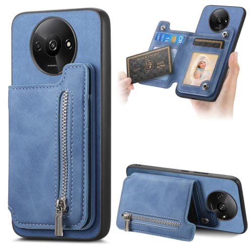 Funda para Teléfono con Cremallera Magsafe Retro para Redmi A3, TaRJetero, Cartera (Azul)