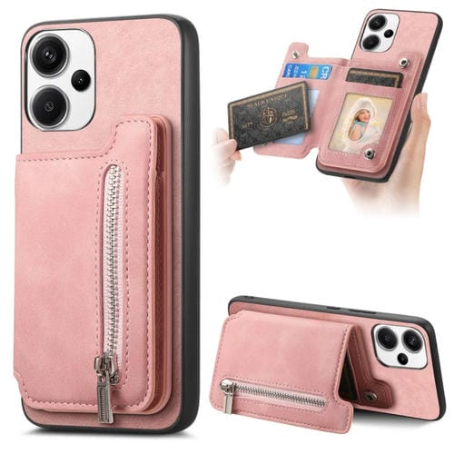 Funda para Teléfono con Cremallera Magsafe Retro para Redmi Note 13 Pro+, TaRJetero, Cartera (Rosa)