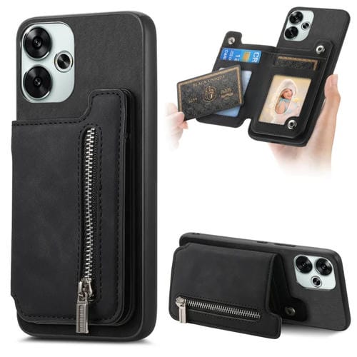 Funda para Teléfono con Cremallera Magsafe Retro para Redmi Turbo 3 5G (Negra)