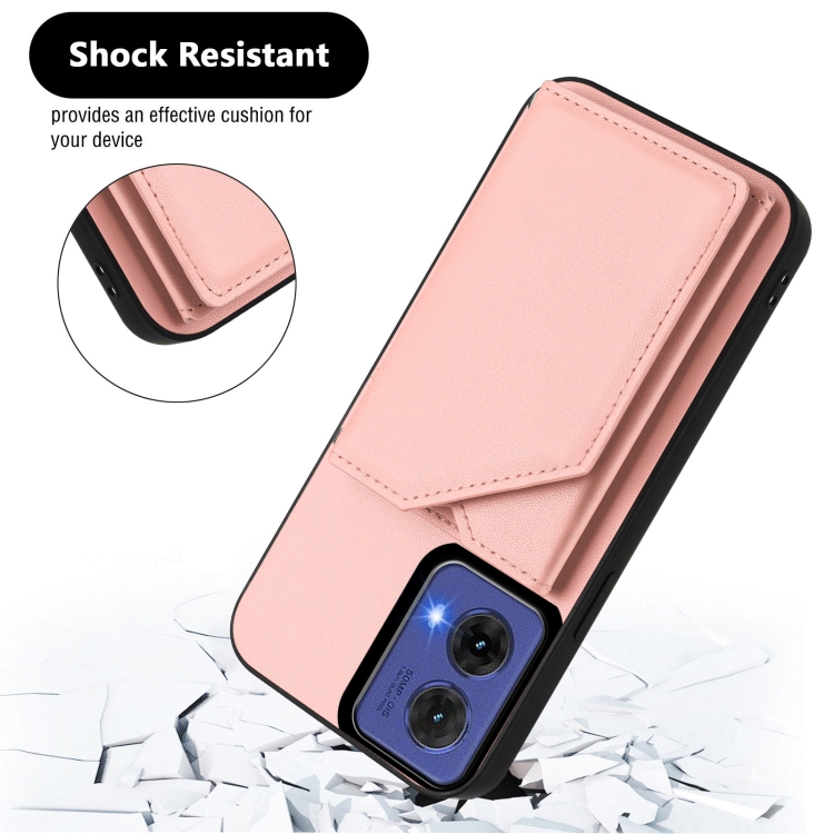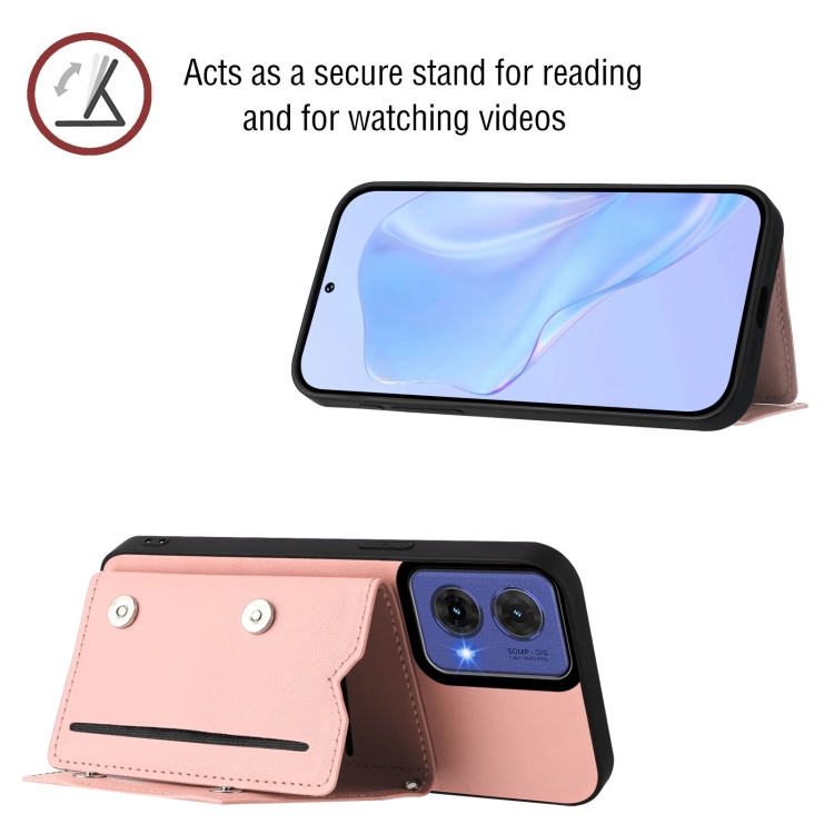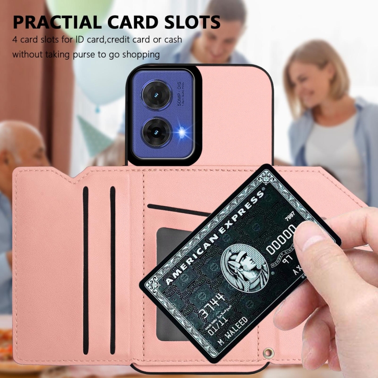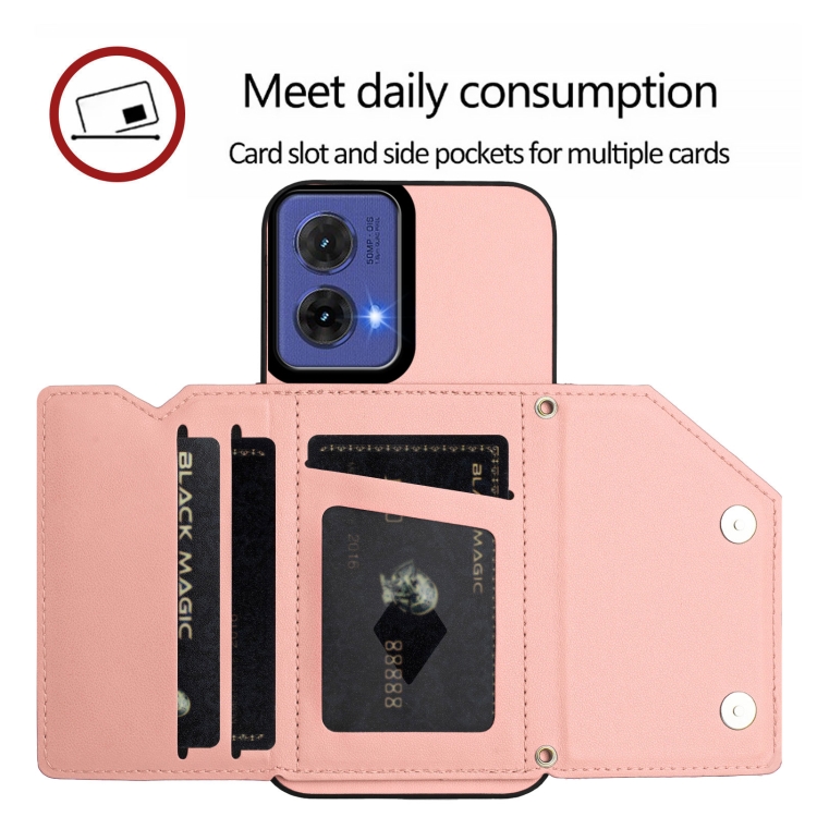 Funda para Teléfono Motorola S50 Neo Skin Feel con 4 Ranuras para Tarjetas y Correa (Rosa)
