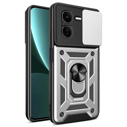 Funda para Teléfono con Diseño de Cubierta Deslizante para Cámara para Vivo Iqoo Z9X de TPU y PC (Plateada)