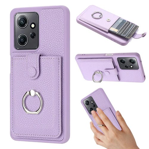 Funda para Teléfono con Diseño de Textura de Lichi y Anillo para Redmi Note 12 4G (Morado)