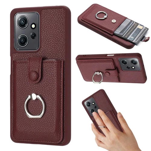 Funda para Teléfono con Diseño de Textura de Lichi y TaRJetero con Anillo para Redmi Note 12 4G (Rojo Vino)