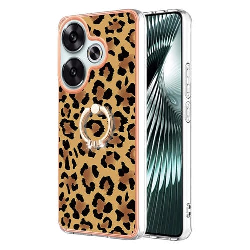 Funda para Teléfono con Galvanoplastia Imd de Doble Cara para Xiaomi Poco F6 5G con Soporte para Anillo (Estampado de Leopardo)