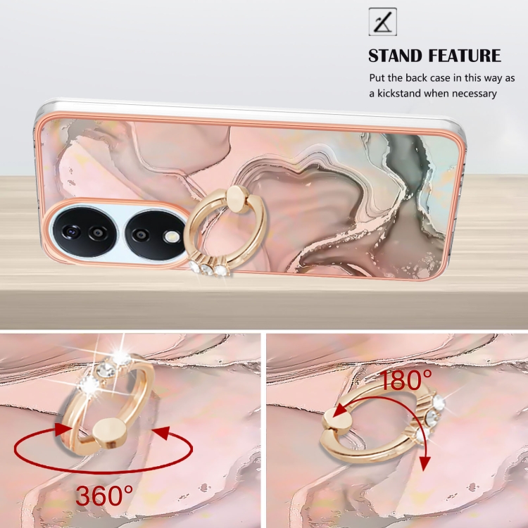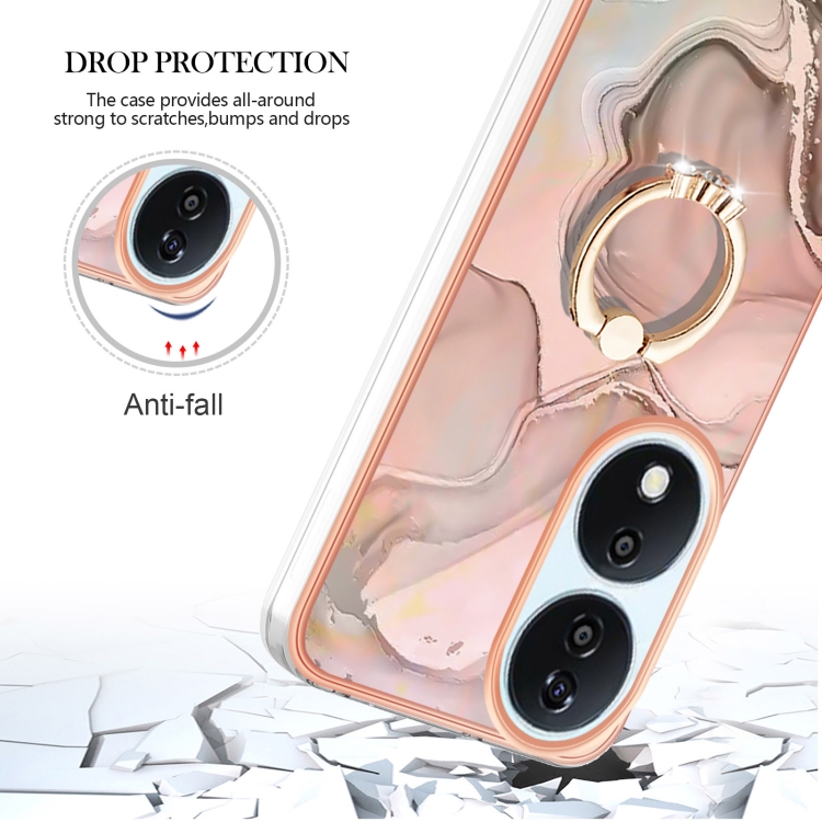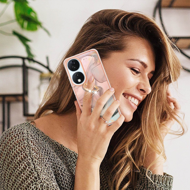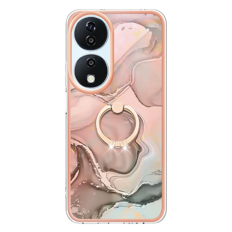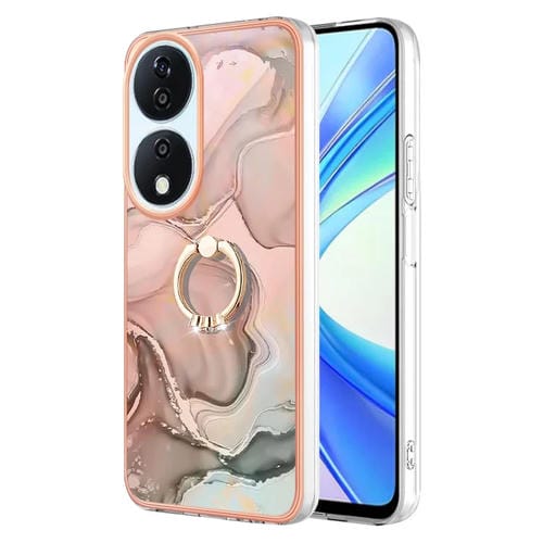 Funda para Teléfono Honor X7B 4G/5G con Imd Doble Cara, Galvanoplastia Mármol y Anillo (Oro Rosa)