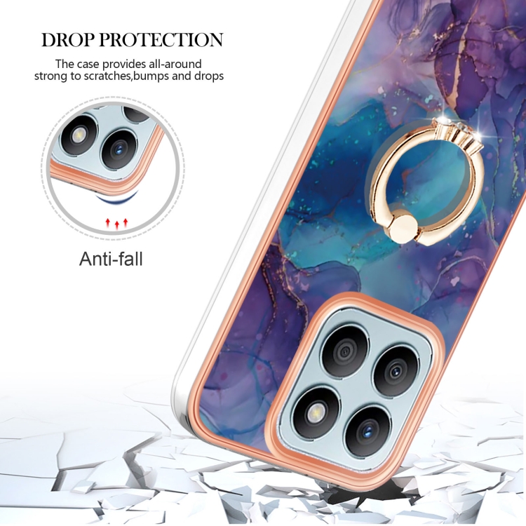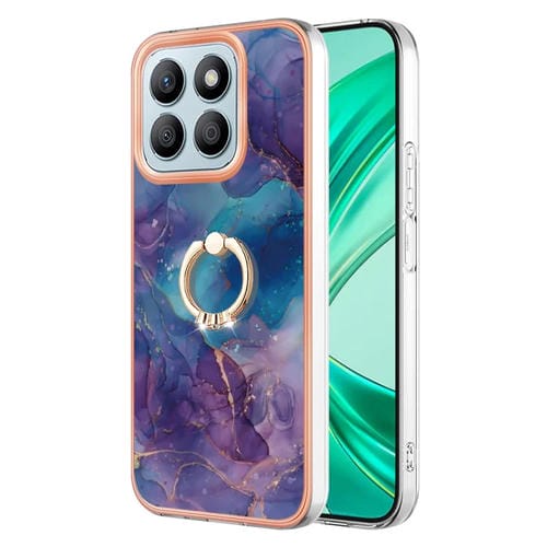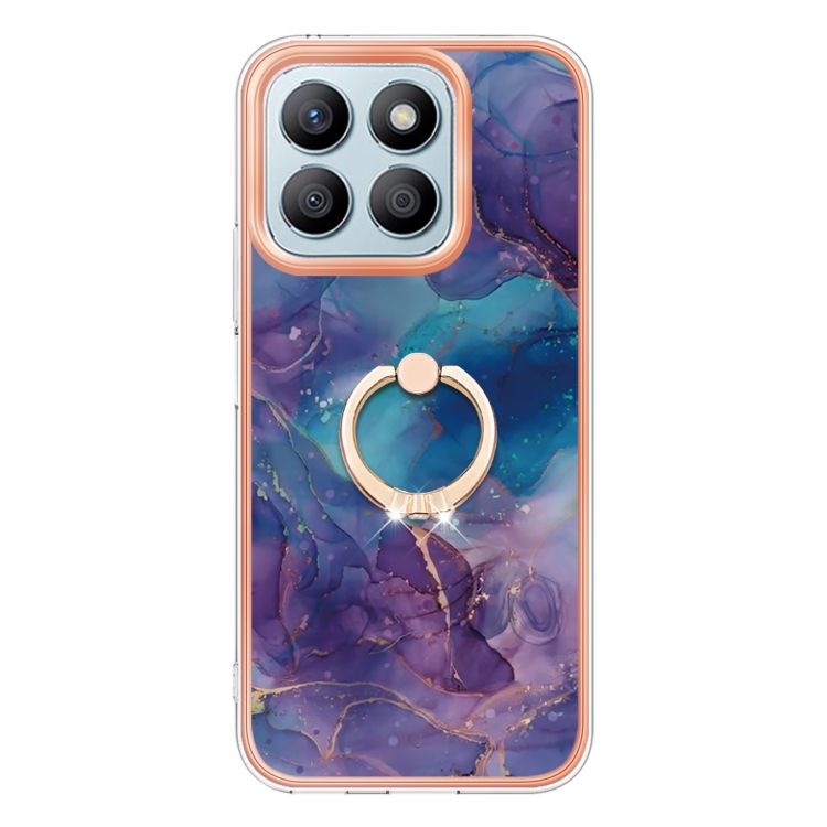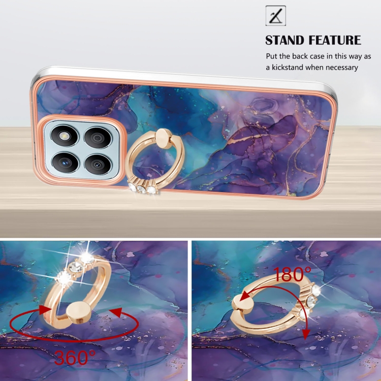 Funda para Teléfono Honor X8B con Imd Doble Cara, Galvanoplastia Mármol y Anillo (Púrpura)