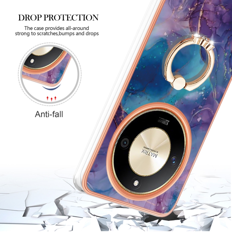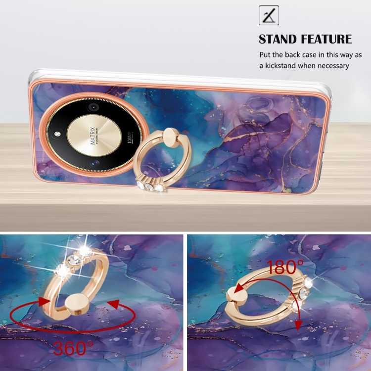 Funda para Teléfono Honor X9B con IMD Doble Cara, Galvanoplastia Mármol y Anillo (Púrpura)