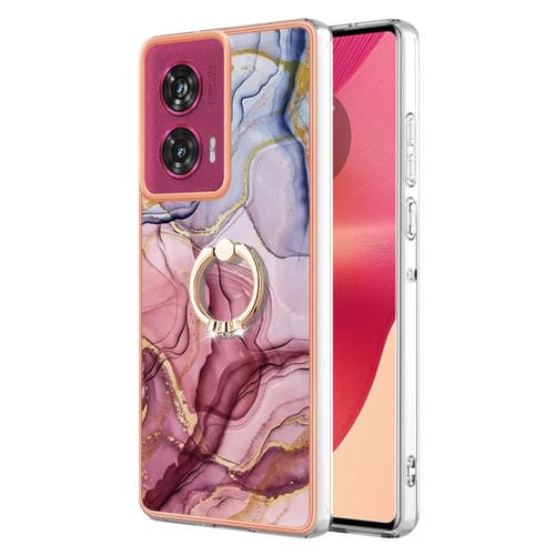 Funda para Teléfono Motorola Edge 50 Fusion con Imd Doble Cara, Galvanoplastia Mármol y Anillo (Rojo Rosa)