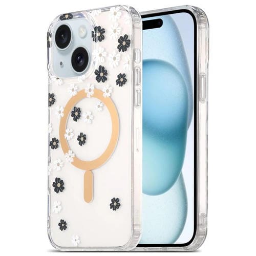 Funda para teléfono iPhone 15 Plus con Laminado de Doble Cara Imd Magsafe (Margarita Blanco y Negro)