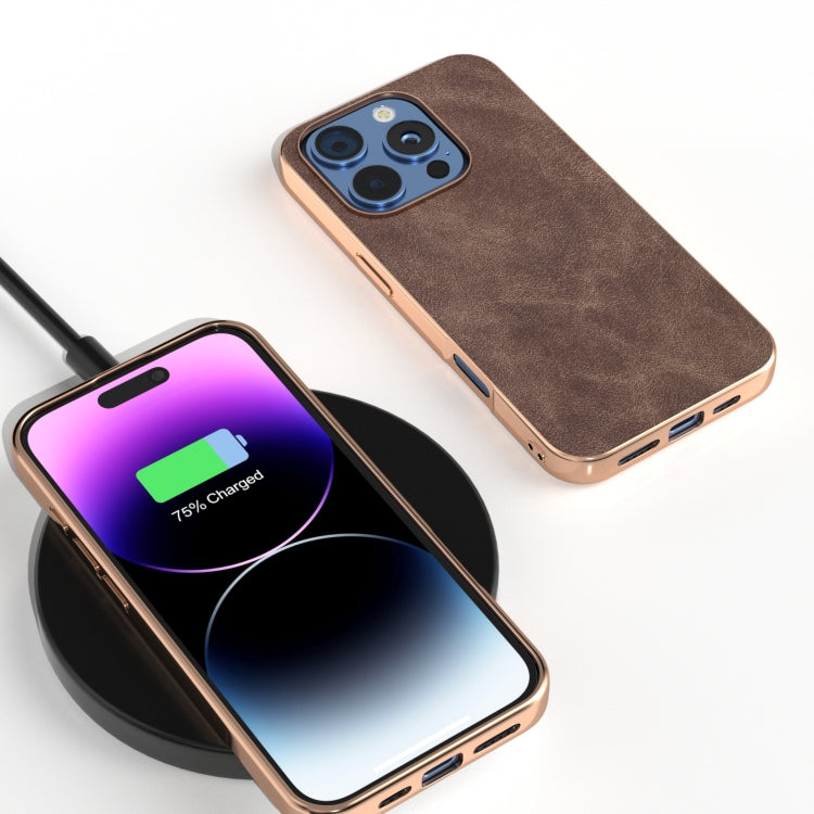 Funda para Teléfono iPhone 16 Pro Max Marco Galvanizado Cuero Sintético Cobertura Total (Café)