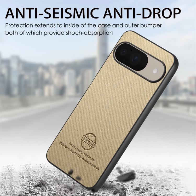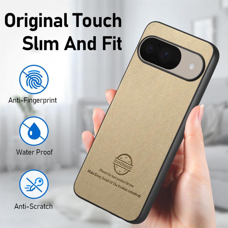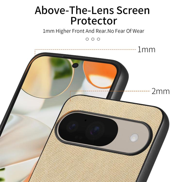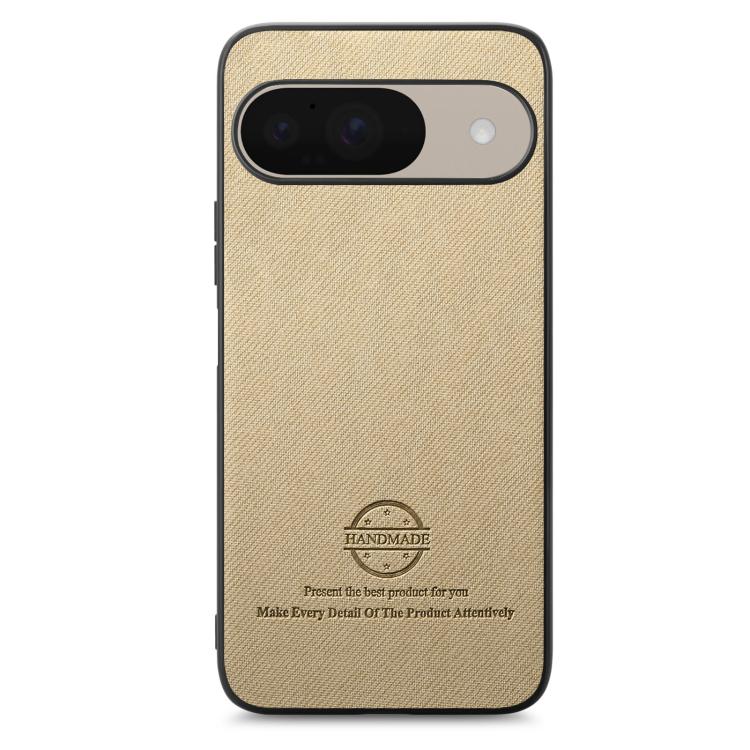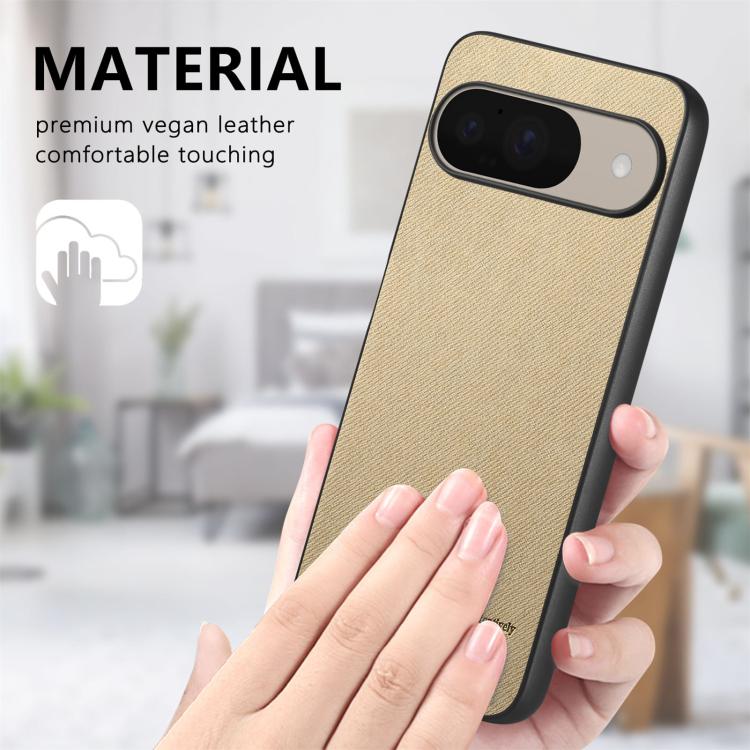 Funda para Teléfono Google Pixel 9/9 Pro con Piel de Cuero y Tela de Sarga (Caqui)