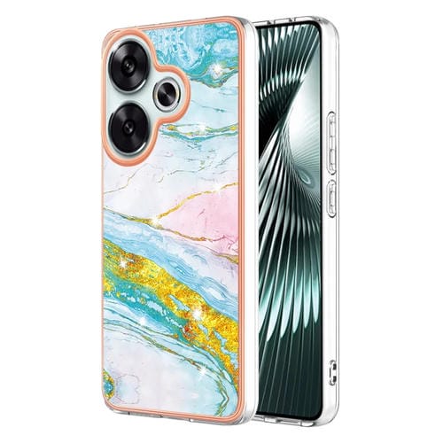 Funda para Teléfono con Revestimiento de Mármol Galvanizado de Doble Cara Imd para Xiaomi Poco F6 5G (Verde 004)