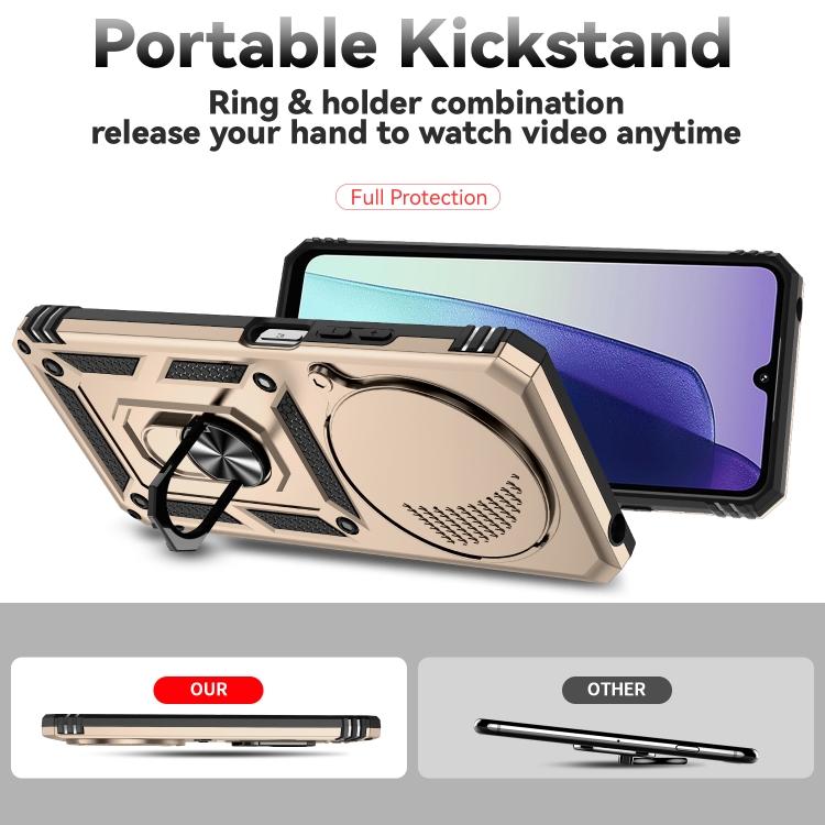 Funda Deslizante con Soporte para Cámara para Redmi 14C 4G (Dorada)