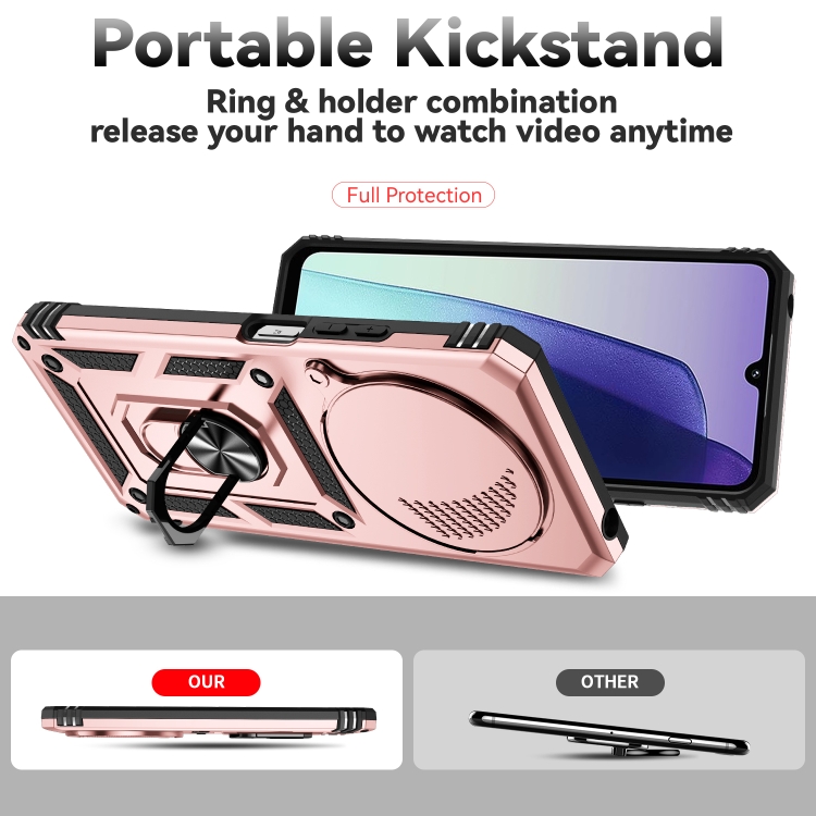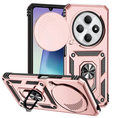 Funda Deslizante con Soporte para Cámara para Redmi 14C 4G (Oro Rosa)