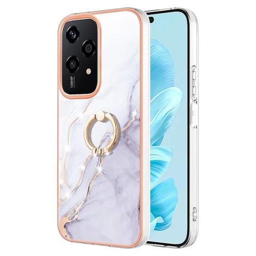 Funda para Teléfono Honor 200 Lite con Soporte Anillo y Revestimiento Mármol TPU (Blanco)