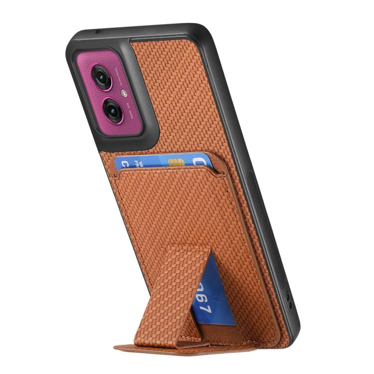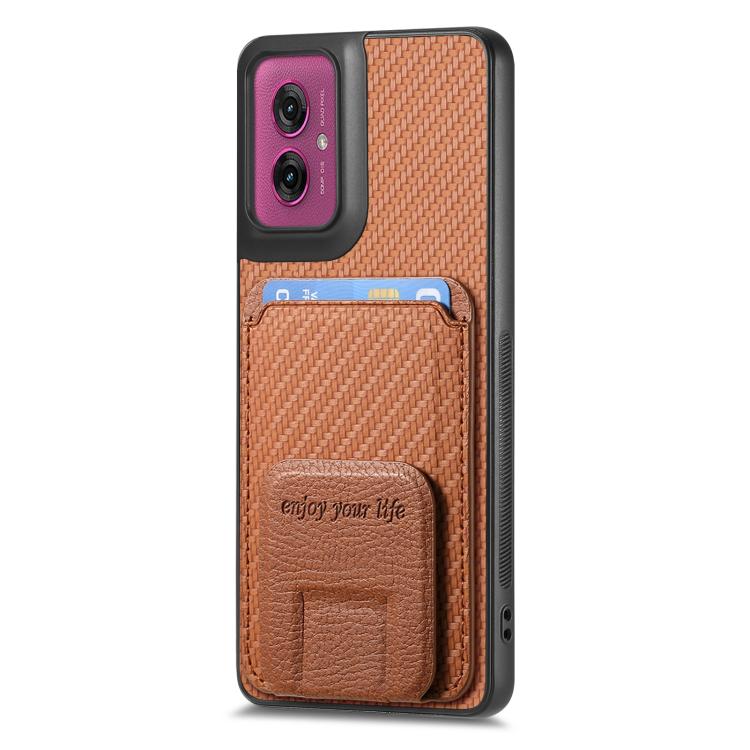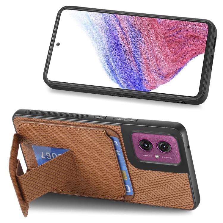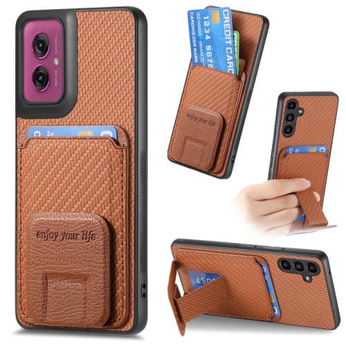 Funda para Teléfono Motorola Moto G55 con Soporte Plegable y Tarjetero de Fibra de Carbono (Marrón)