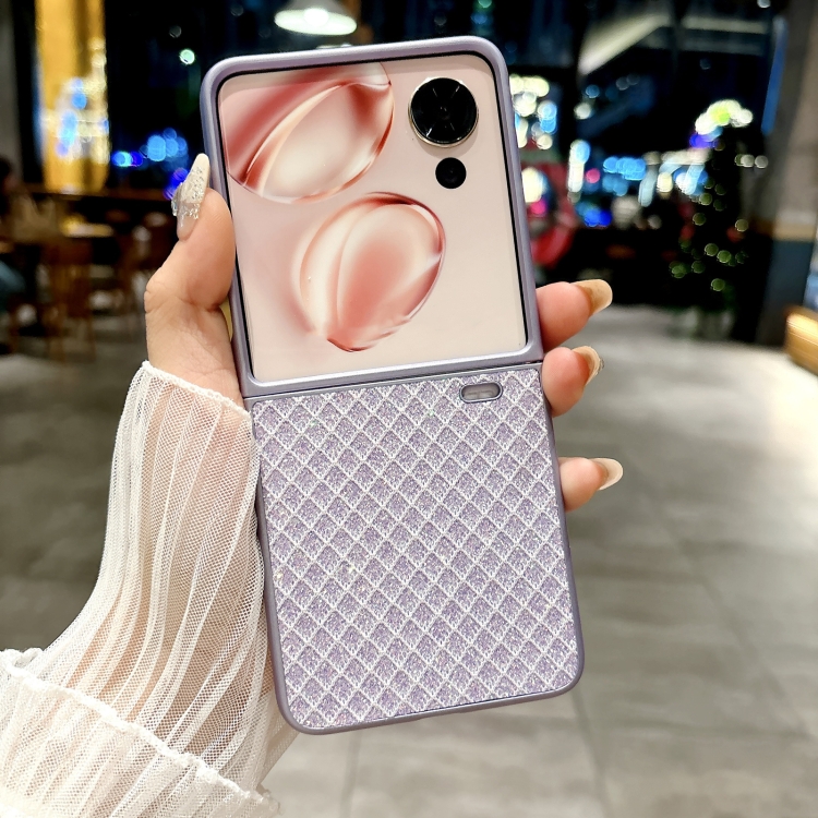 Funda para Teléfono Honor Magic V con Tapa de PC Rombos y Diamantes Brillantes (Morado)