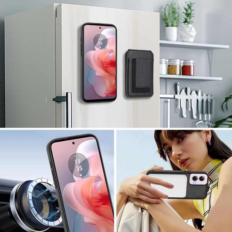 3. Almacenamiento conveniente: la bolsa para tarjetas contiene 3 ranuras para tarjetas, fuerte adsorción magnética, se puede desmontar