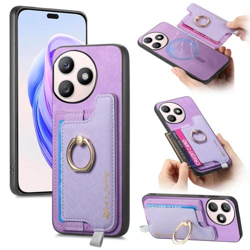 Funda para Teléfono Honor X50I+ con Tarjetero y Anillo Cuero Diseño Retro Magsafe (Morado)