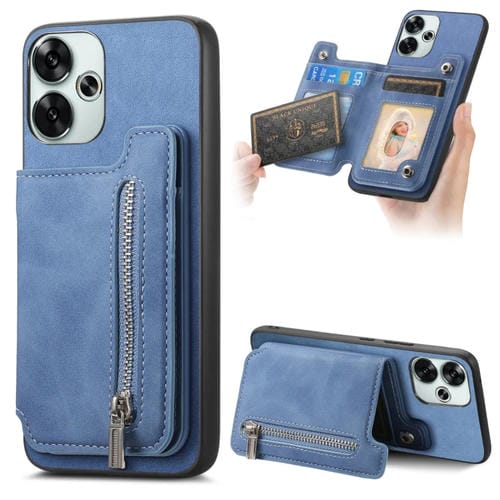 Funda para Teléfono con TaRJetero y Cremallera Retro Magsafe para Redmi Turbo 3 5G (Azul)
