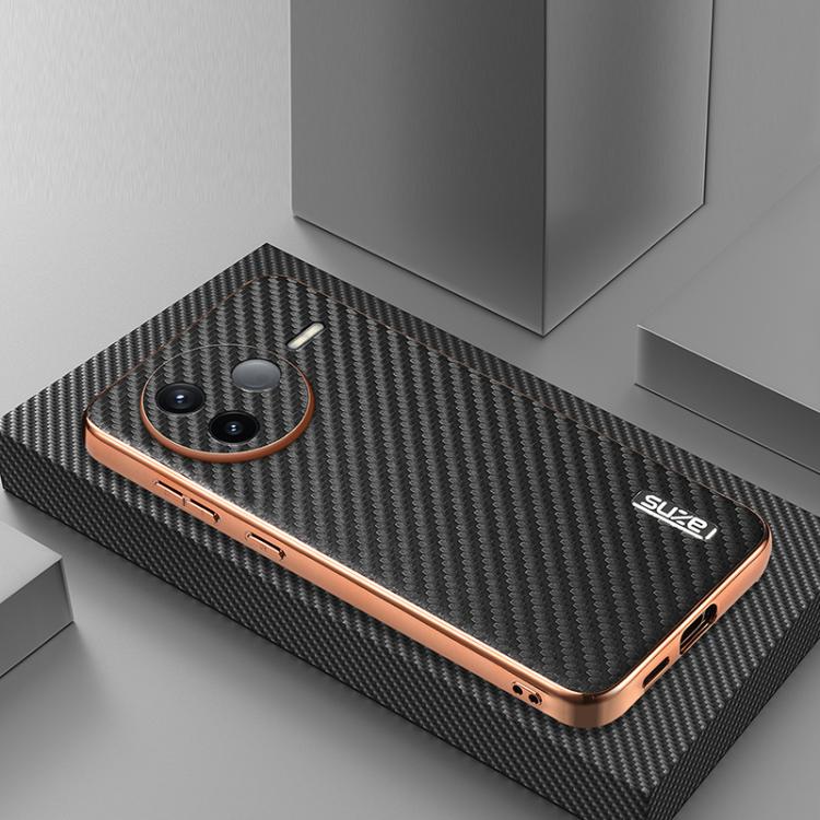 Funda para Teléfono con Textura de Fibra de Carbono con Borde Galvanizado Azns para Redmi K80 (Negra)