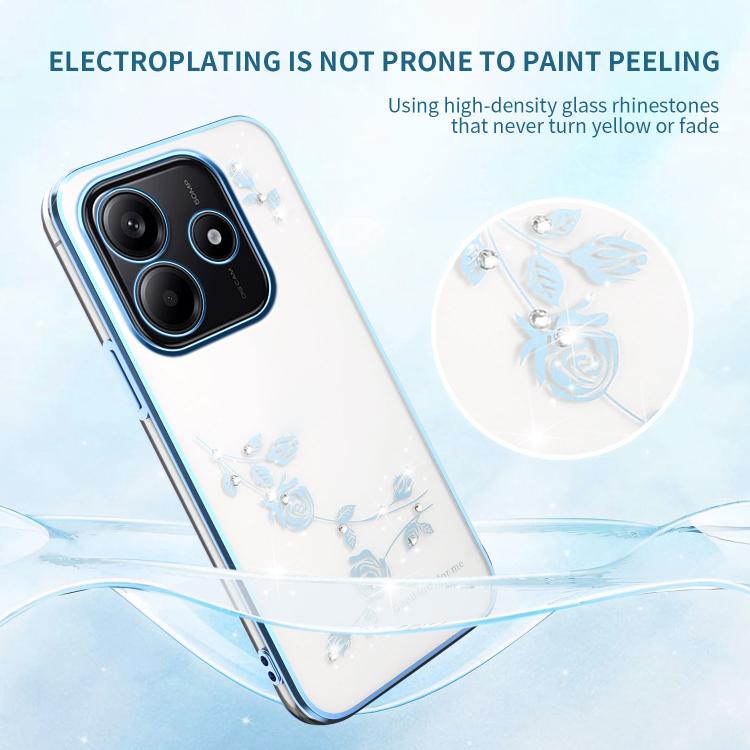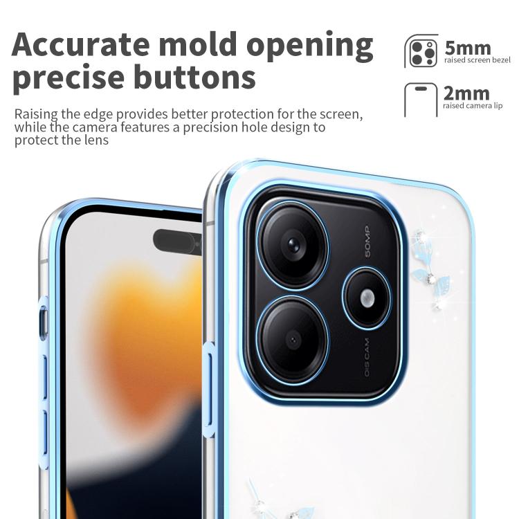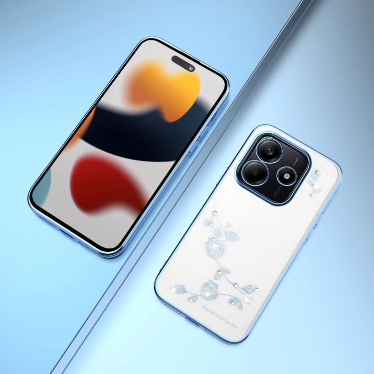 Funda para Teléfono con Todo Incluido y Diseño de Flores y Diamantes Brillantes para Xiaomi Redmi Note 14 5G (Azul)