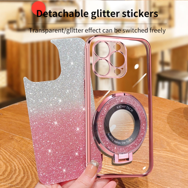 Funda para Teléfono TPU con Soporte Redondo Purpurina Degradada iPhone 16 Pro (Morado)