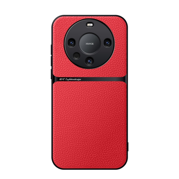 Funda para Teléfono Huawei Mate 60 Pro de Piel de Lichi con Cobertura Total Magnética y Antigolpes (Roja)