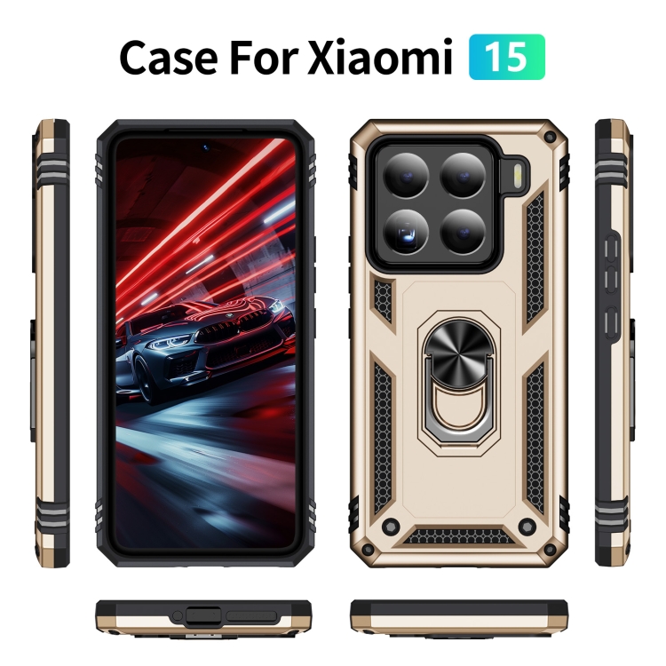 Funda Para Teléfono Xiaomi 15 A Prueba De Golpes De Tpu + Pc Con Soporte (Dorado)