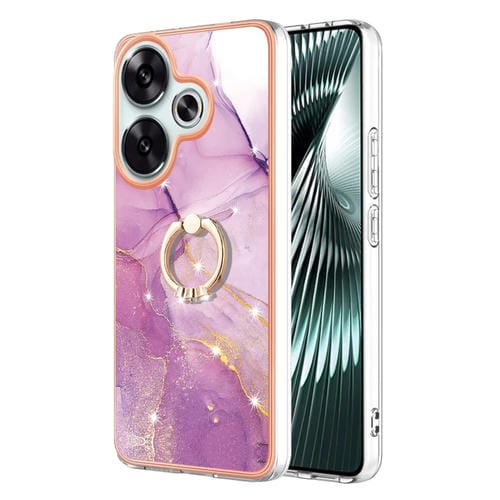 Funda para Teléfono Xiaomi Poco F6 5G con Galvanoplastia de Mármol Imd TPU y Soporte para Anillo (Morado 001)